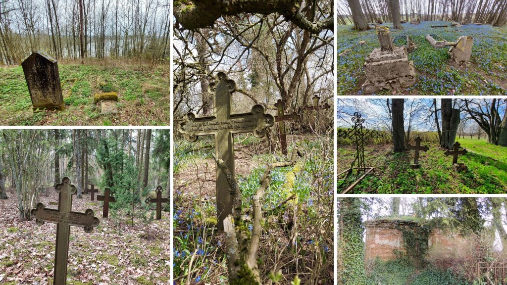 Ryc. Czytelnymi reliktami dawnego krajobrazu cmentarzy rodowych w dalszym ciągu pozostają aleje, które ułatwiały rozpoznanie cmentarza, stając się jego identyfikatorami oraz budowały związek takiego miejsca pamięci z majątkiem, na przykładzie obiektów w Durągu i Tejstymach