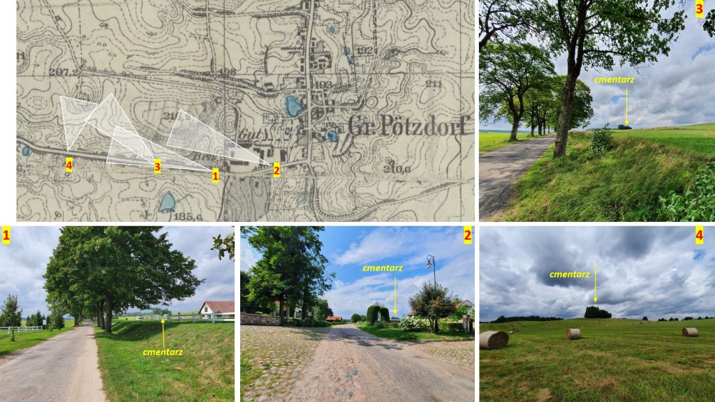 Ryc. Sekwencja widoków z drogi na cmentarz rodowy w Pacółtowie