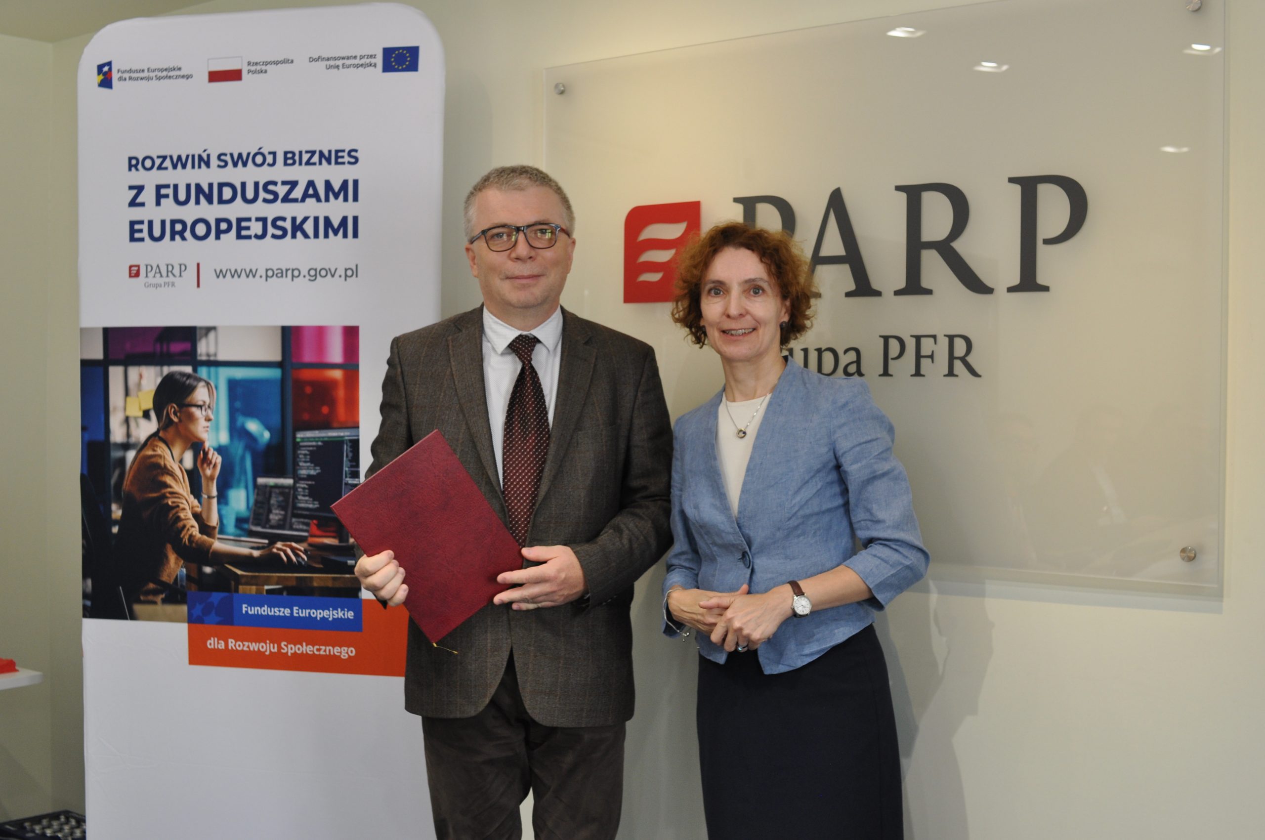 Na fotografii dr Maciej Paszewski w towarzystwie Prezes PARP Katarzyny Duber-Stachurskiej.