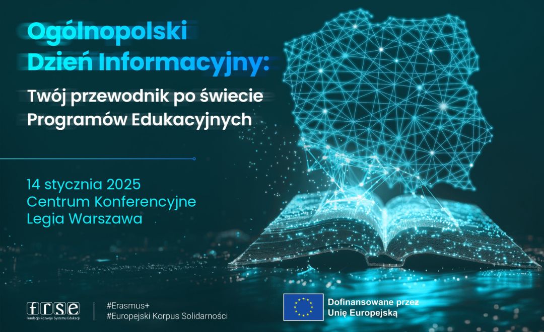 Zapraszamy do wzięcia udziału w kolejnym Ogólnopolskim Dniu Informacyjnym organizowanym przez Fundację Rozwoju Systemu Edukacji (FRSE), który odbędzie się 14 stycznia 2025 r. w Warszawie. To wyjątkowe wydarzenie przybliży pełną ofertę edukacyjną programów takich jak Erasmus+, Europejski Korpus Solidarności oraz innych inicjatyw, które wspierają rozwój kompetencji oraz innowacje w edukacji.