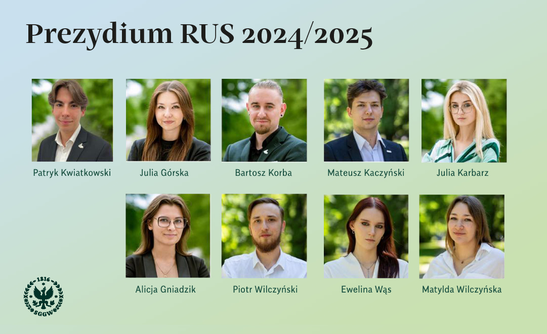 Skład Rady Uczelnianej Samorządu Studentów (RUSS) SGGW na rok akademicki 2024/2025.