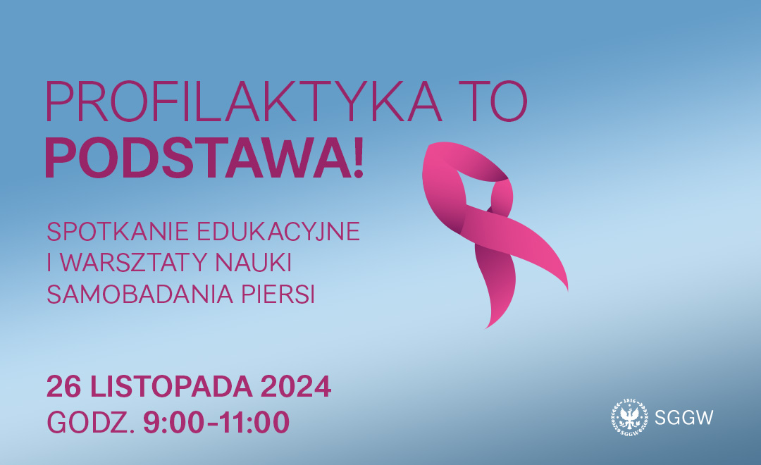 26 listopada Narodowy Instytut Onkologii im. Marii Skłodowskiej-Curie oraz Instytut Nauk o Zwierzętach SGGW serdecznie zapraszają na spotkanie edukacyjno-profilaktyczne oraz warsztaty nauki samobadania piersi.
