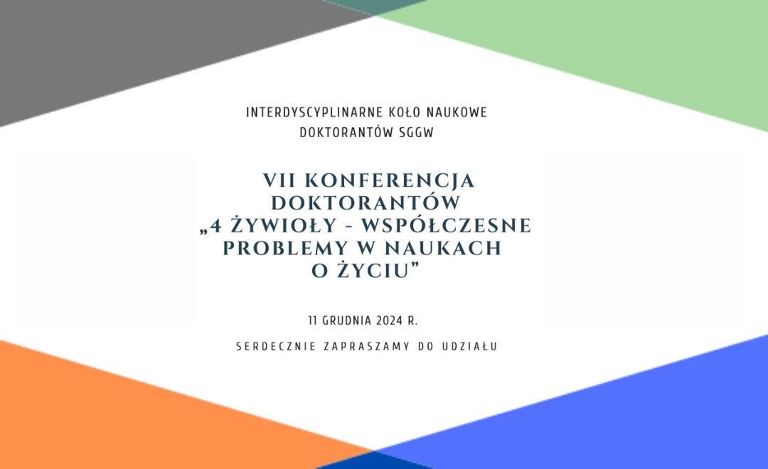 Szkoła Główna Gospodarstwa Wiejskiego w Warszawie oraz Instytut Agrofizyki im. Bohdana Dobrzańskiego Polskiej Akademii Nauk serdecznie zapraszają na VII Konferencję Doktorantów pt. „Cztery Żywioły – współczesne problemy w naukach o życiu.”