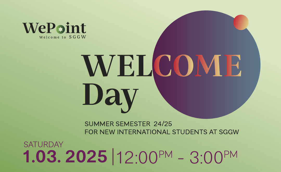 As the start of your studies at SGGW is approaching, we invite you to join our Welcome Day, an event tailored to meet you in person and provide some helpful information about SGGW and life in Warsaw.