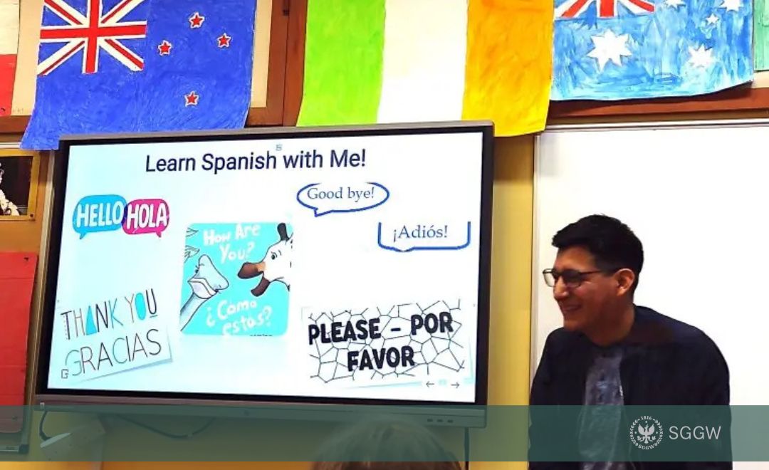 SGGW student, Cristian Olivares, from the Faculty of Applied Informatics and Mathematics, visited the primary school children and introduced them to his country, Ecuador, in an exciting and engaging way. During the meeting the children took part in a quiz and received small gifts from Ecuador!